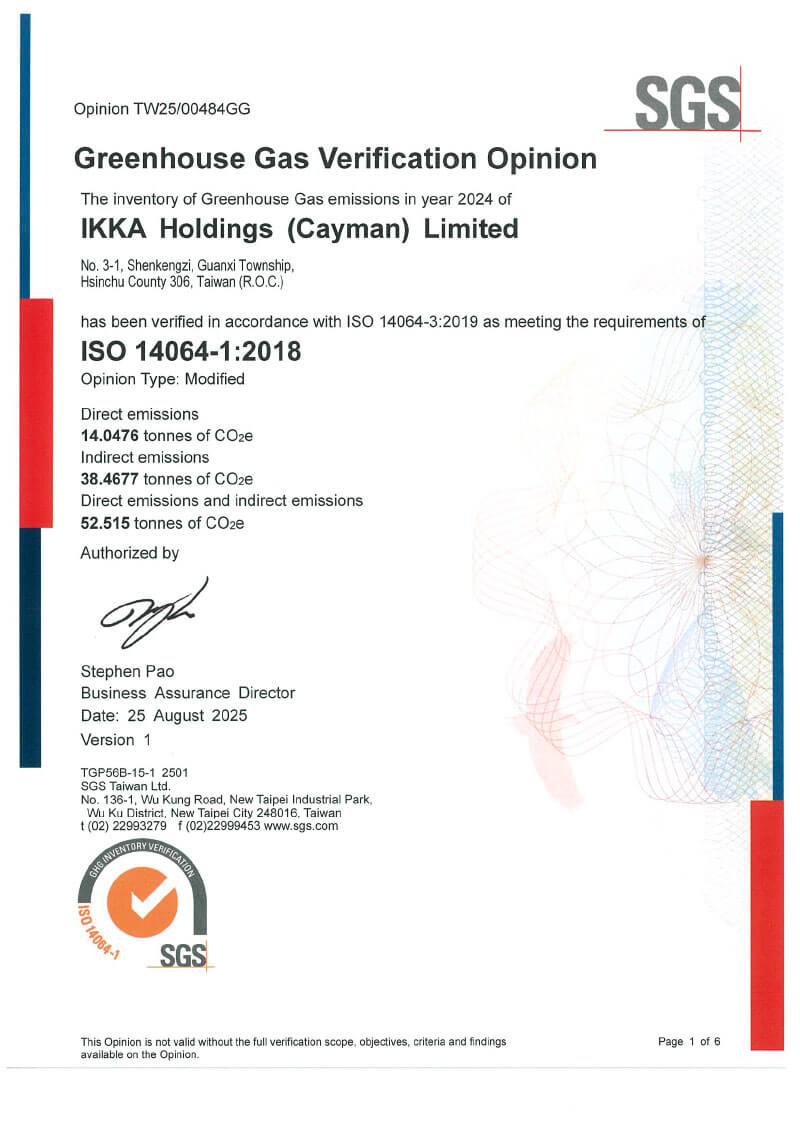 本公司於2025 年7 月完成2024 年溫室氣體排放查驗,並取得ISO-14064-1:2018 版標準要求之查驗意見書。
